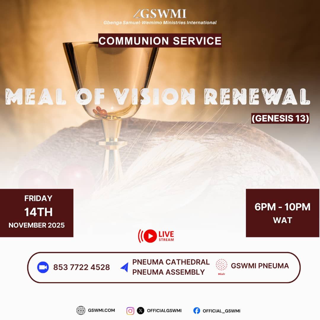 We are having the Meal of Renewal of Vision tonight. Tomorrow at Ireakari, we are having the Glory Experience Concert with Minister Nnenna, and on Sunday, we will be at Supernatural Life Assembly at Surulere for the Faith and Supernatural Conference.